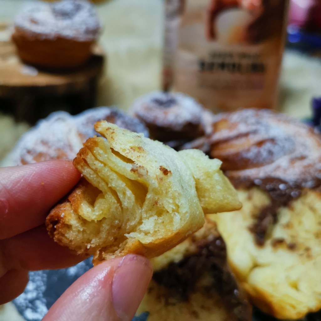 Look at that gorgeous layering! Isn’t it absolutely mouthwatering? You can eat this plain or you can do what I like to do – pipe in rich and creamy Nutella into the Cruffin for that sweet, delectable, chocolatey taste.