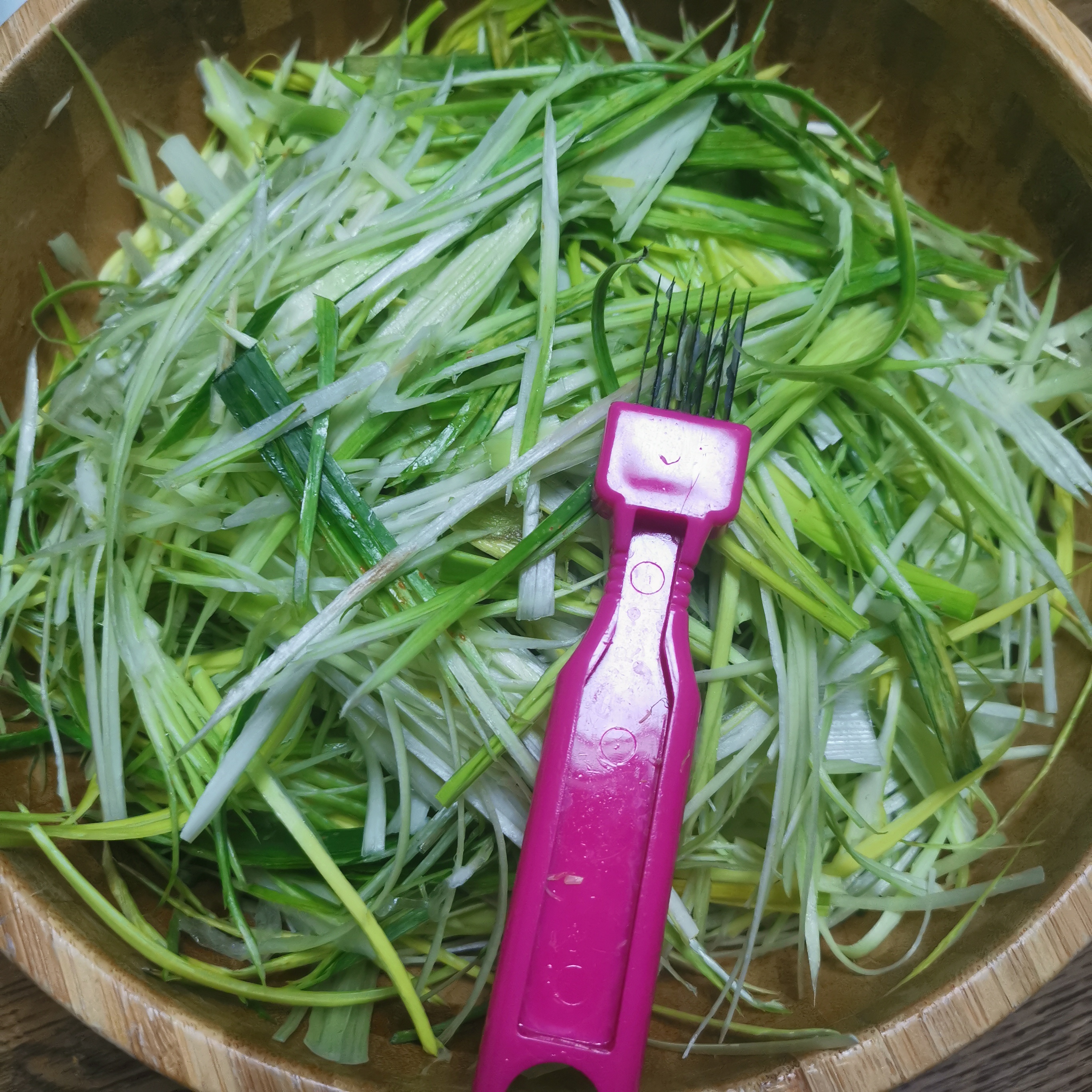 Shred the leeks into thinner strips. I used to use scissors as well but was lucky to find a multi-blade cutter at Daiso and it was quite useful for me.