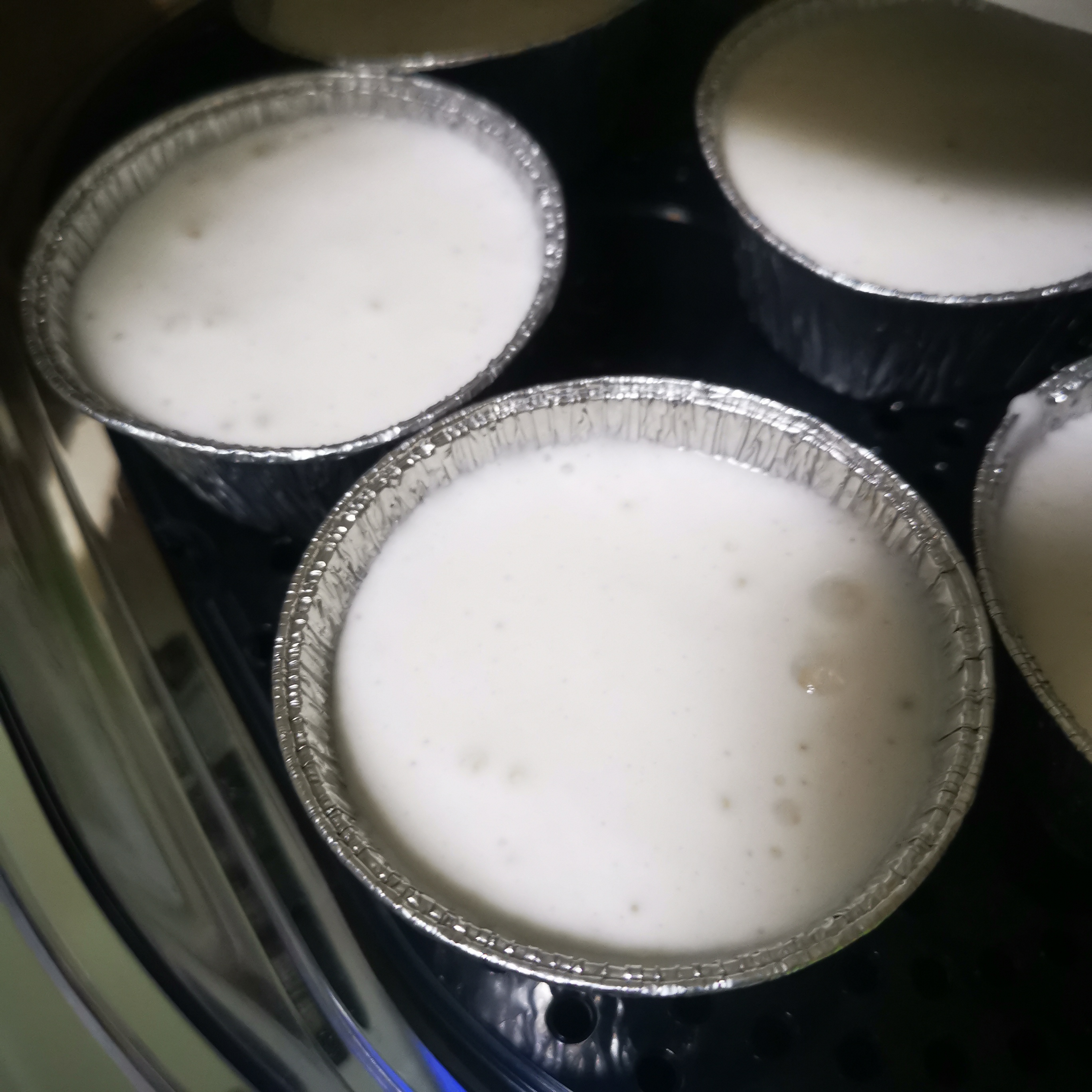 Mix all the ingredients gently using a whisk. You have to preserve as much of the air in the batter. Transfer the mixture to oiled tins. Use coconut oil. Then steam immediately on high heat.