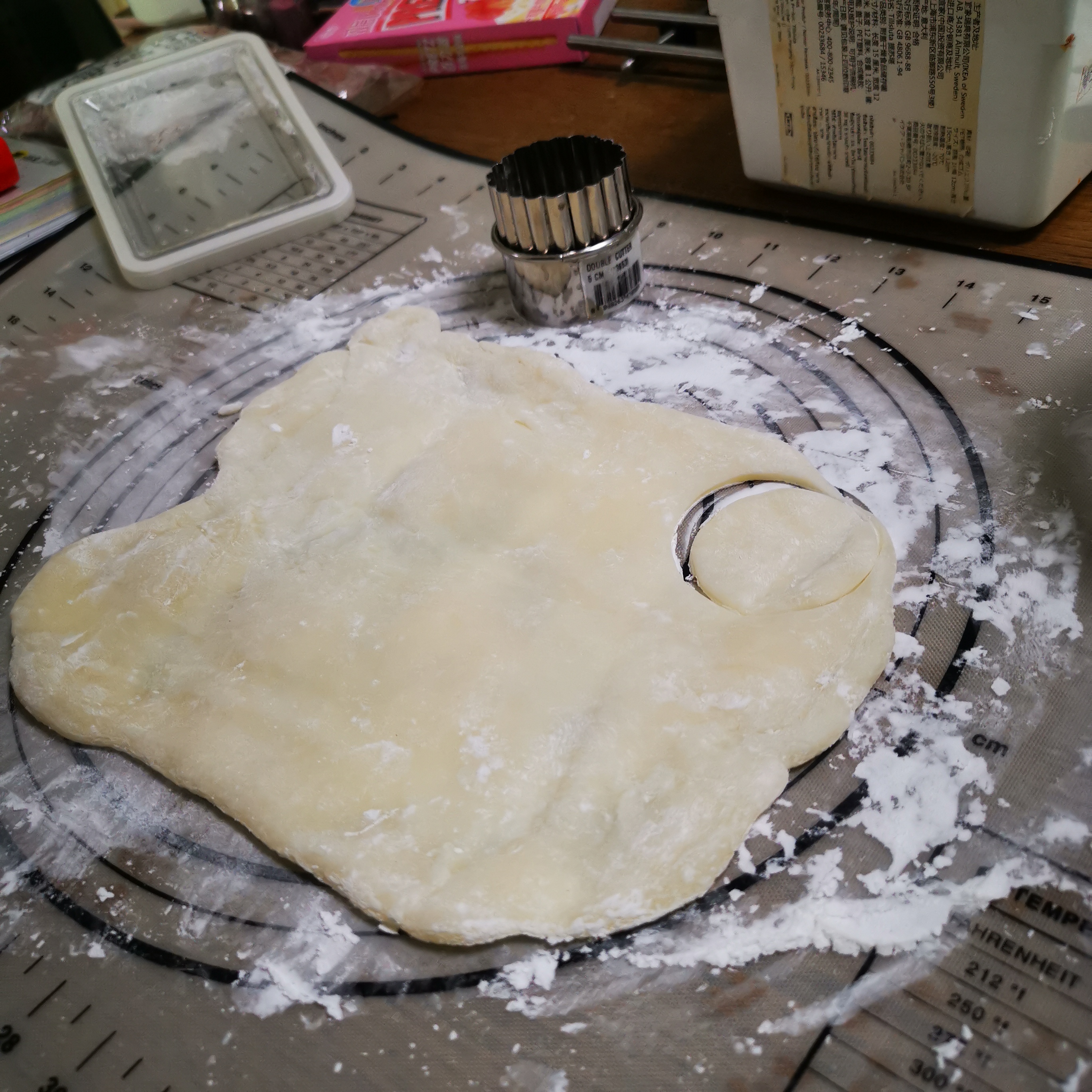 • sprinkle your mat with cornstarch or potato starch. Roll the dough with a rolling pin and use a 5cm cookie cutter to cut into circles.