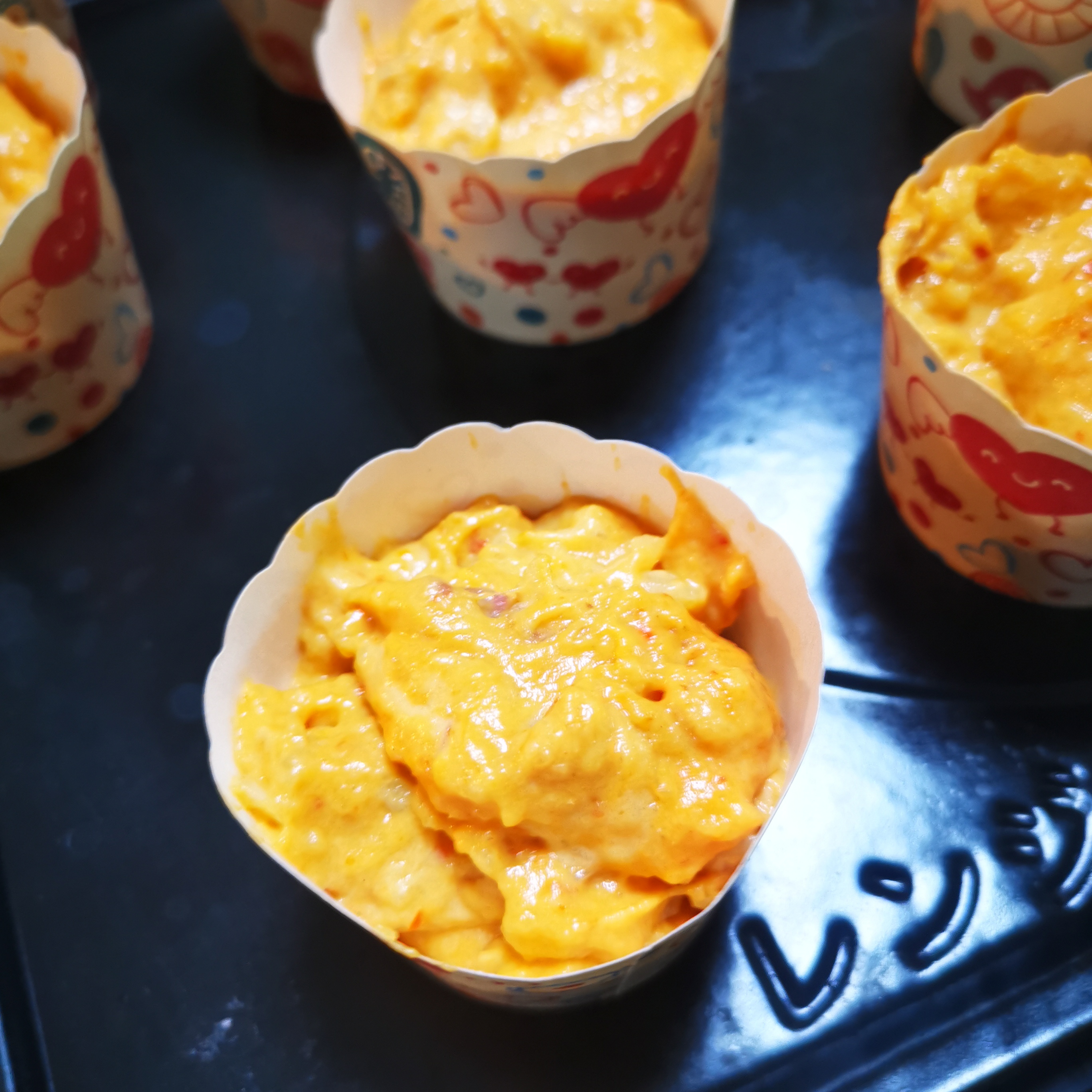 • Scoop the thick batter into the muffin cup, about 3/4 full.
