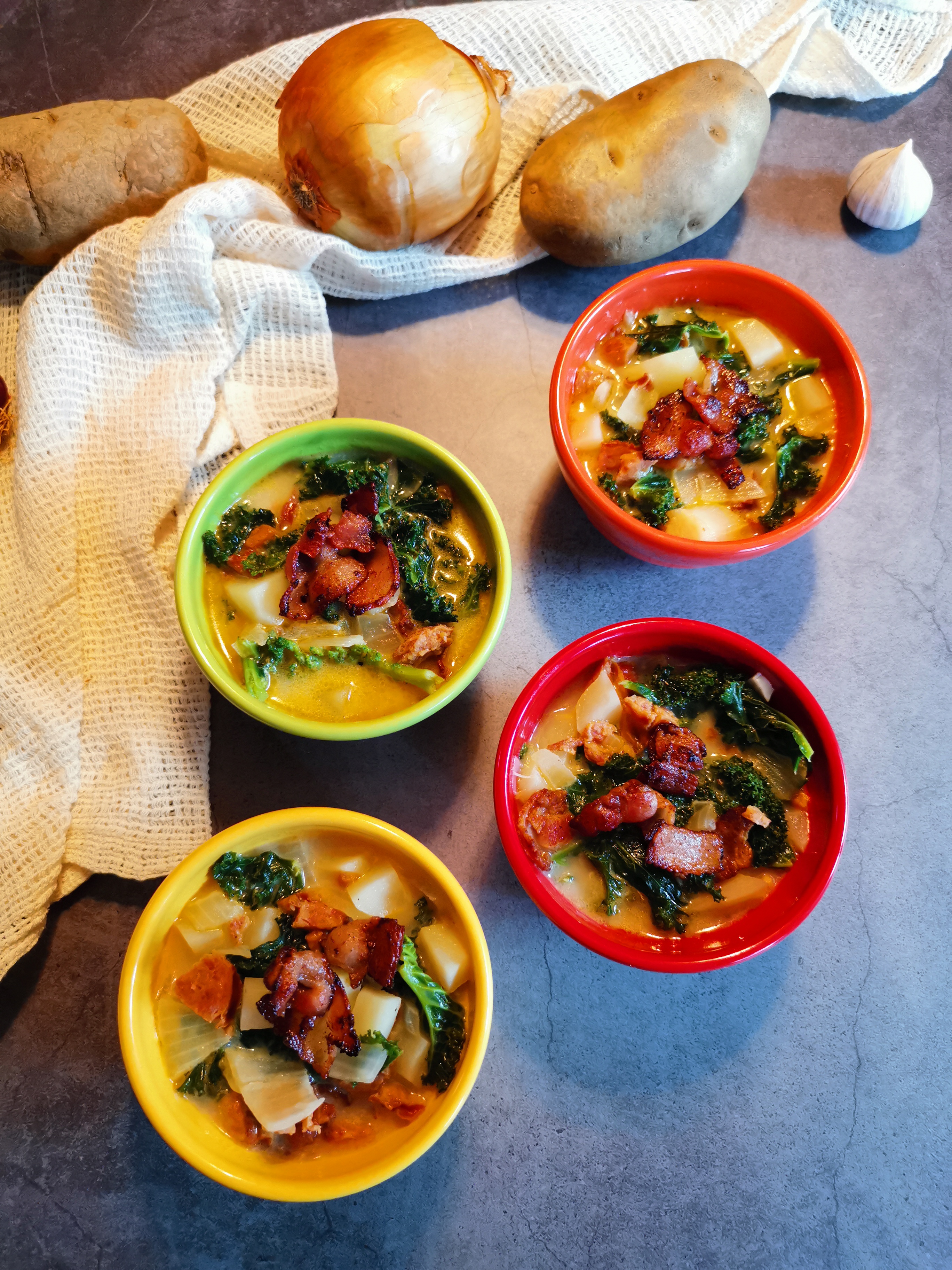 • Bring the soup to boil, then turn down the heat and let it simmer for for about 20-25 minutes, or until the potatoes and kale are soften