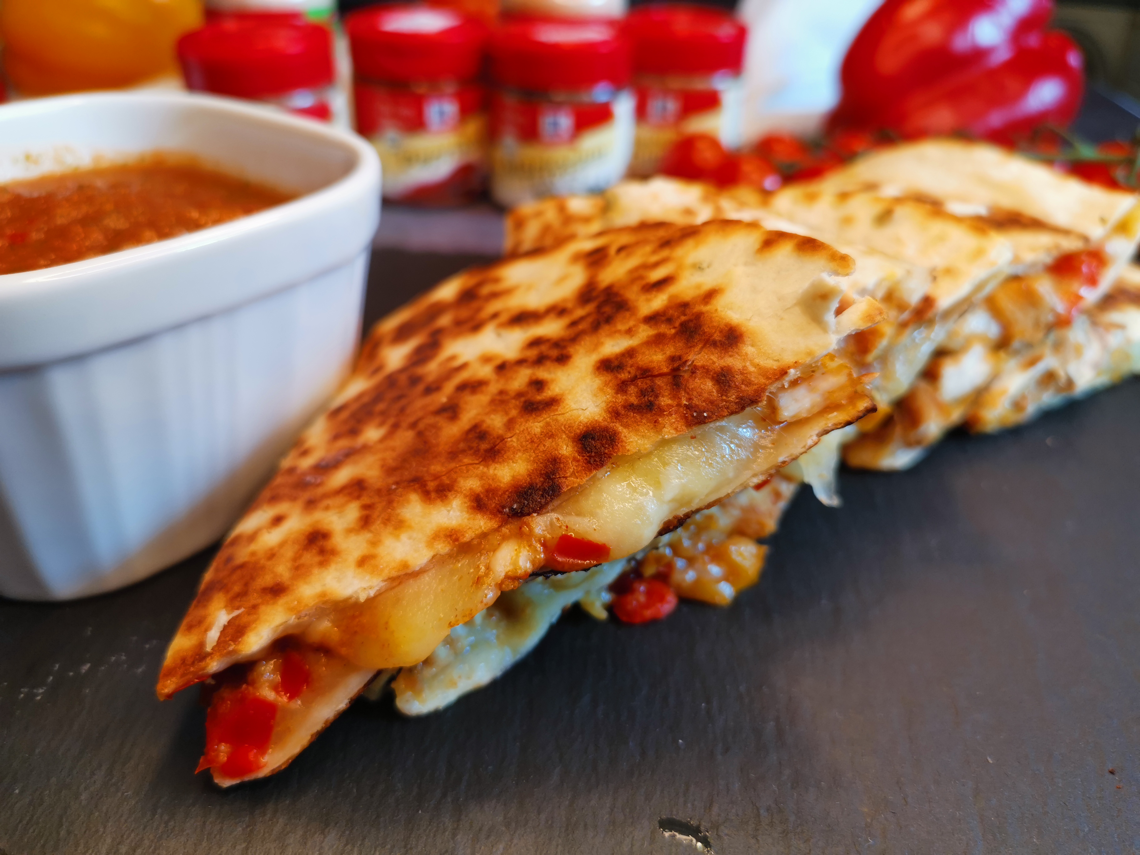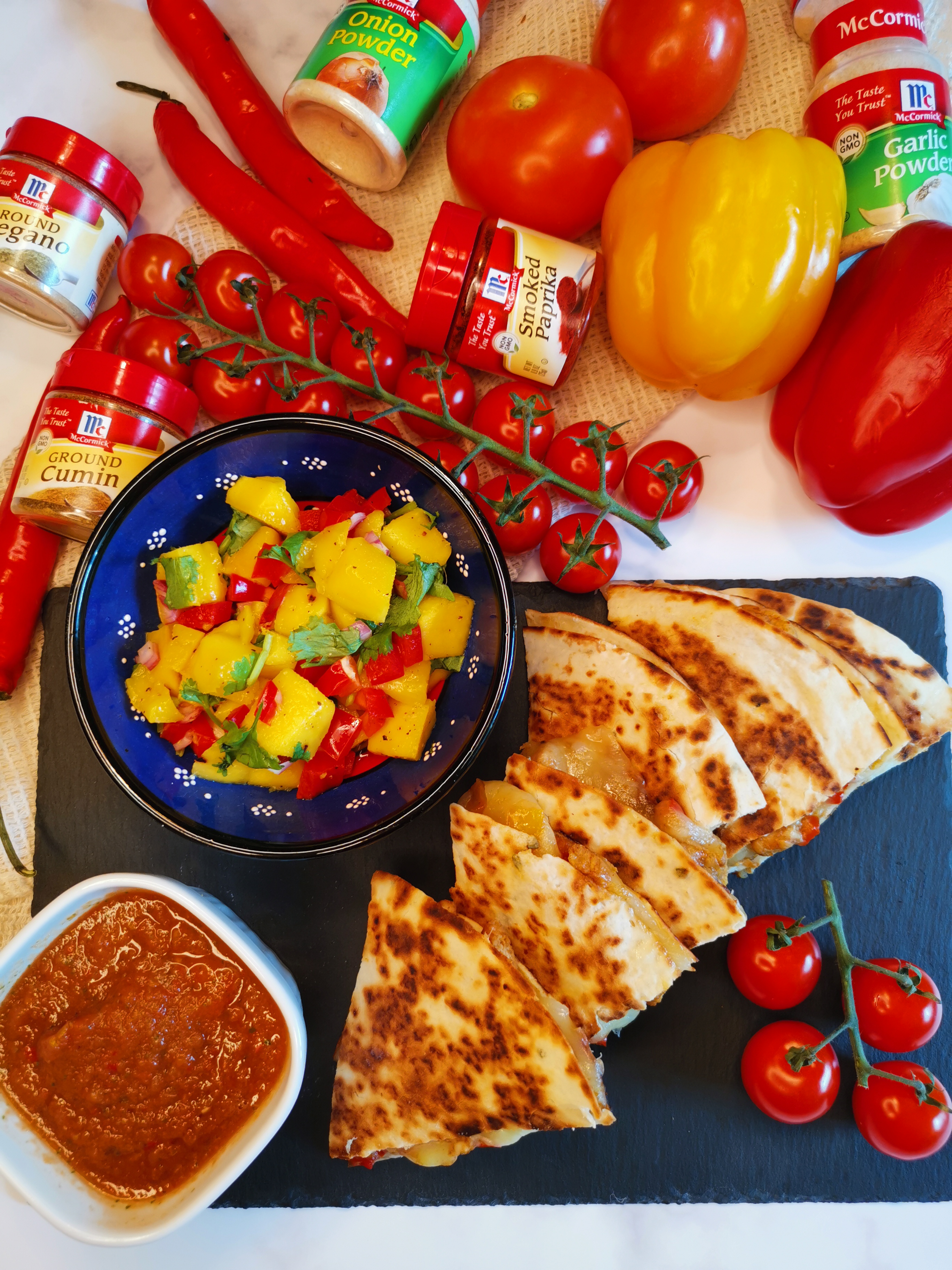 Hola ! Amigos and amigas! Buenas Dias! Today I have decided to make quesadilla for dinner. It is very easy to make, yet bursting with flavours from the different spices used. As you can see from the photo above, I am using a lot of Mc Cormick’s spices. They have great quality herbs and spices that would surely give that ‘oomph’ to your dishes. This recipe yields 2 round quesadillas, perfect for a family of 4.