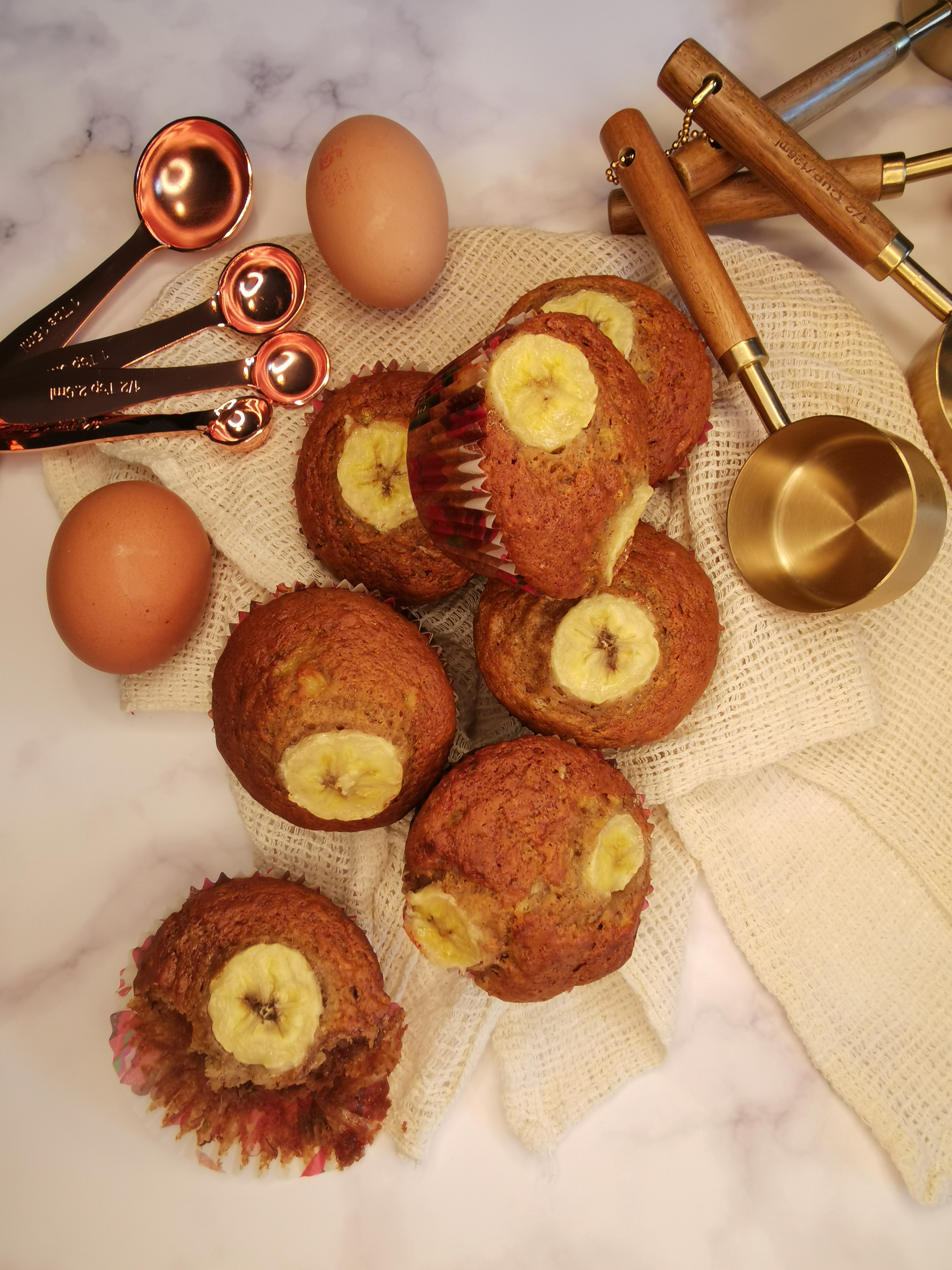• 344g mashed bananas (2 over-ripe bananas + another one for topping )