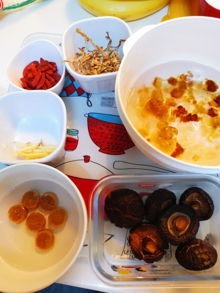 • 15g peach gum (rinse, soaked overnight, remove the impurities, discard the liquid)