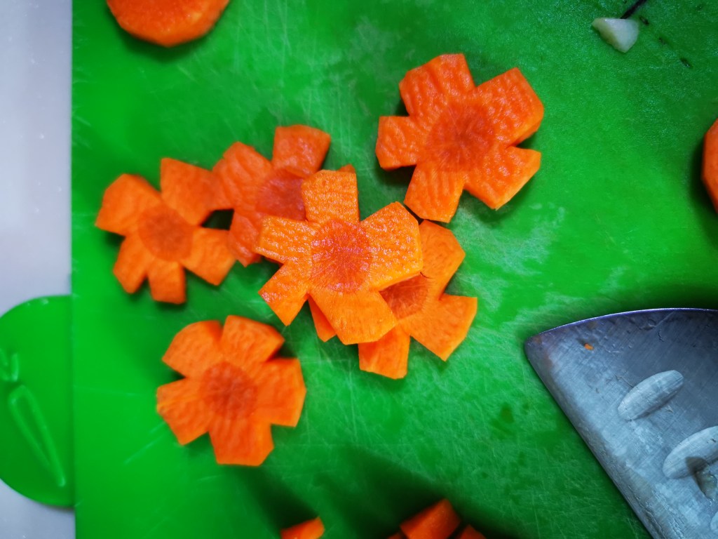 - Using the same pan, turn up the heat to medium high, add in the minced garlic, sauté for about a minute, add in all the carrots and sauté it further for about 2 minutes.
