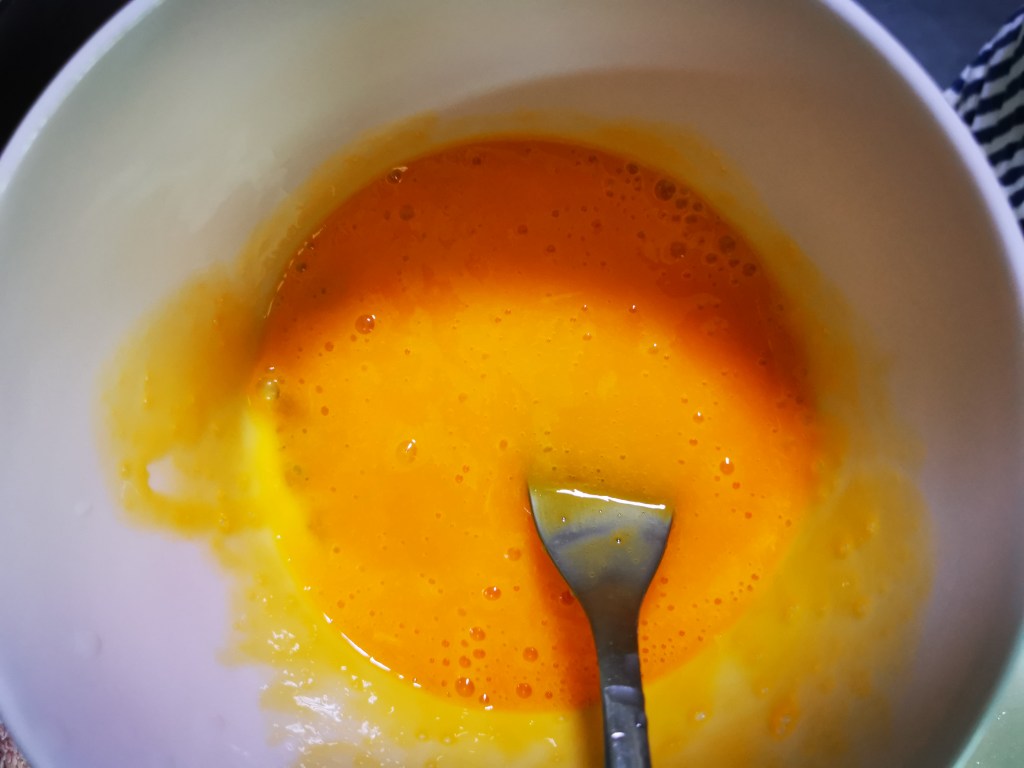 • Whisk the egg yolk well and mix it into the liquid mixture. Whisk until all are well combined