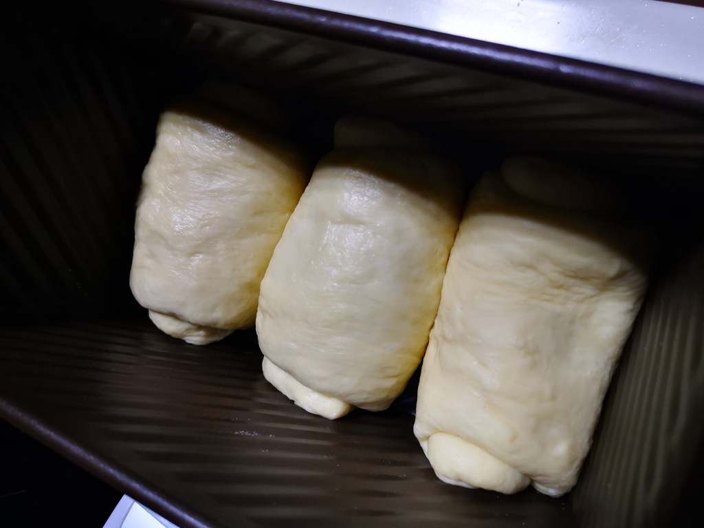 note: if you glass dish to bake, you will need to adjust the temperature to higher or longer time to bake. As glass is not a heat conductor like metal box. Another thing to take not is if you use baking dish, that are low in height , then 90-95 percent proofing height is no longer applicable. What you need to see is at least double in height increase during proofing. Do note that the time of proofing is just a guideline, as there are other factors that would affect the proofing time, it can be the temperature, humidity or even the yeast. 😊