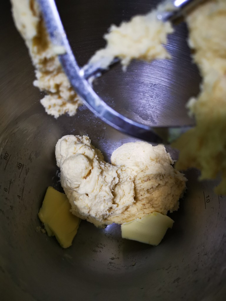 • Add in the butter and knead for about 2 minutes at speed 2 ( low speed)