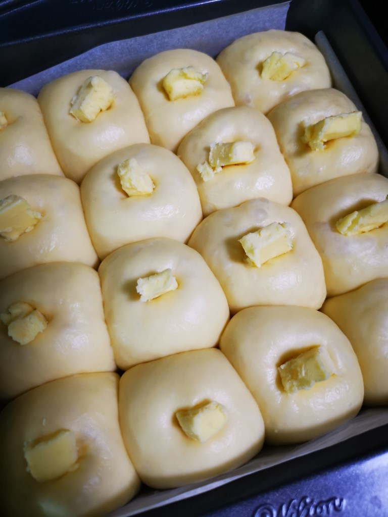 - Place a small piece of butter into the incision. Please avoid putting too big chunk, you will end up with an oily buns.
