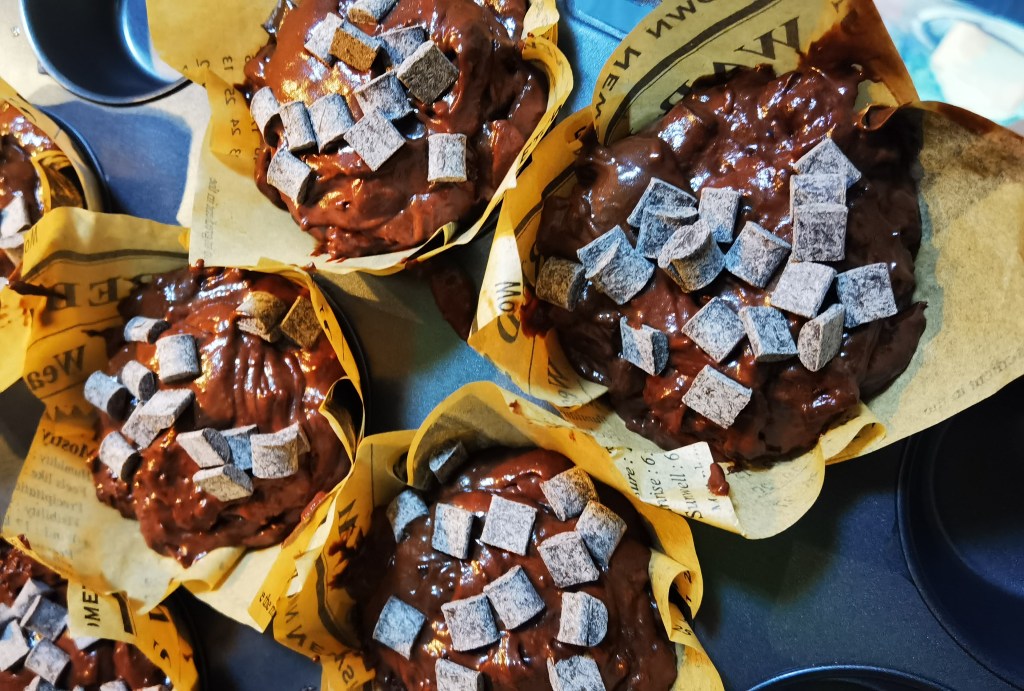 I’ve always been a fan of muffins, especially chocolate muffins. I would buy them from the many cafes in Singapore, but most of the time I find them too sweet to my liking. Thus I decided to make a batch of my own at home and I was pretty pleased with it! The result was a very chocolatey and moist muffin that was not too sweet, achieving the perfect balance of flavours and textures to create one delectable treat! Simply decadent! Yum!