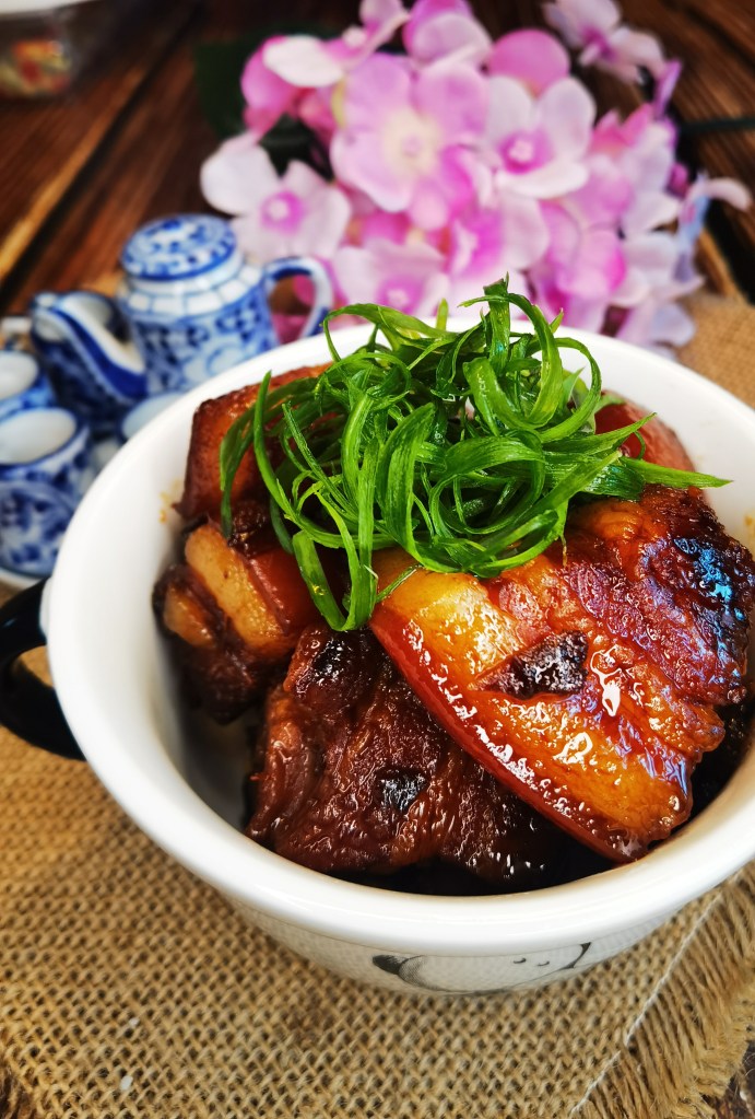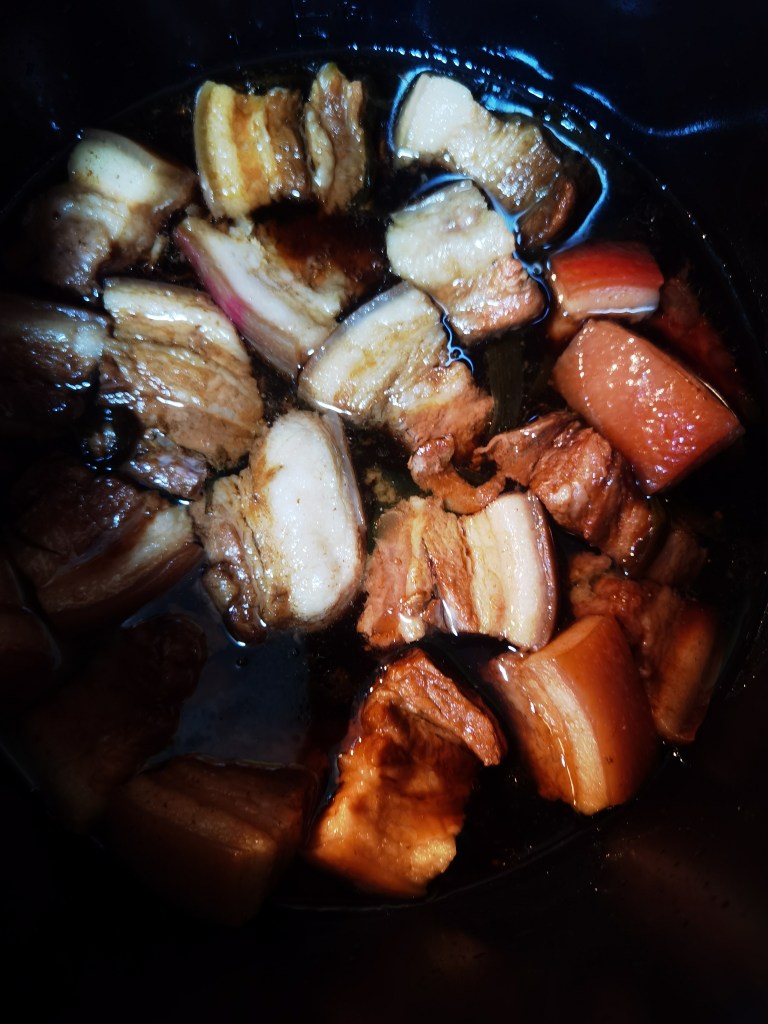 This is my version of wine braised pork belly. I recently bought an all in one cooker and was excited to make dishes from it. I was quite pleased how easy it was for me to prepare a dish while I am doing other things at the same time. The dish came out perfect! This is my first time making this dish and let me tell you, my husband just can’t stop raving about it. He normally would just eat a quarter cup of rice, but tonight, he just couldn’t resist it and added more. The meat is so tender, sweet and savoury. (油而不腻,是一个很好下饭的一道菜). Try it and you will not regret it!