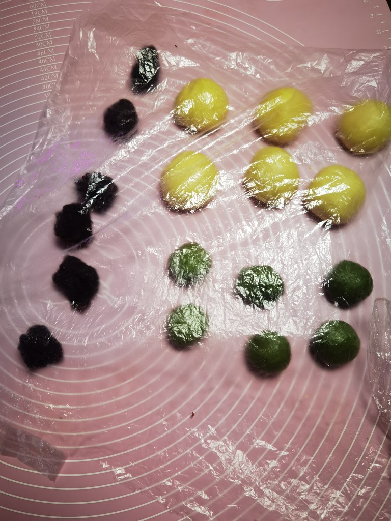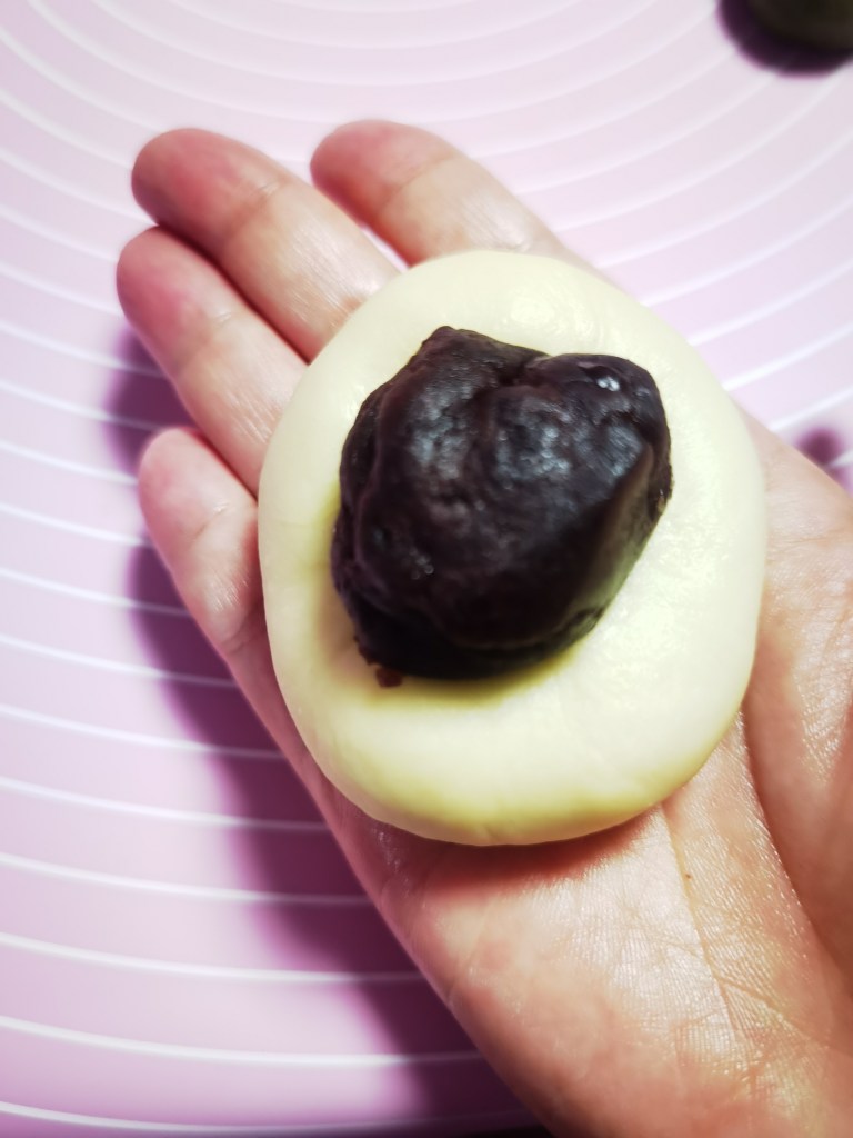 Divide the red bean filling into 6 balls. Cover and set aside. Prepare the sweet bread.