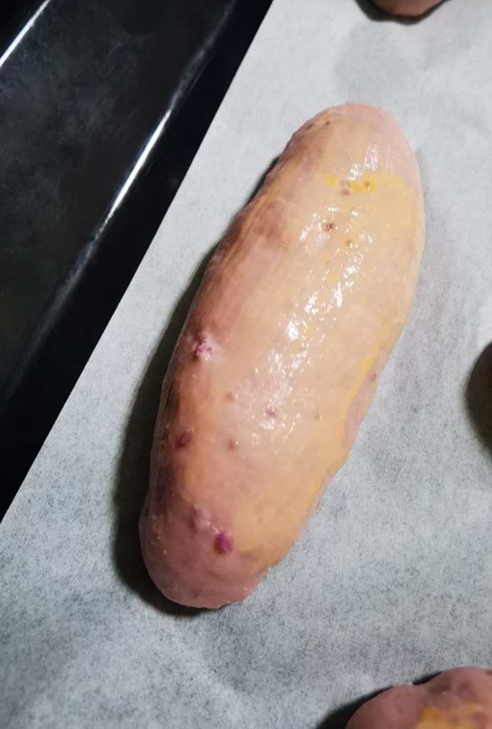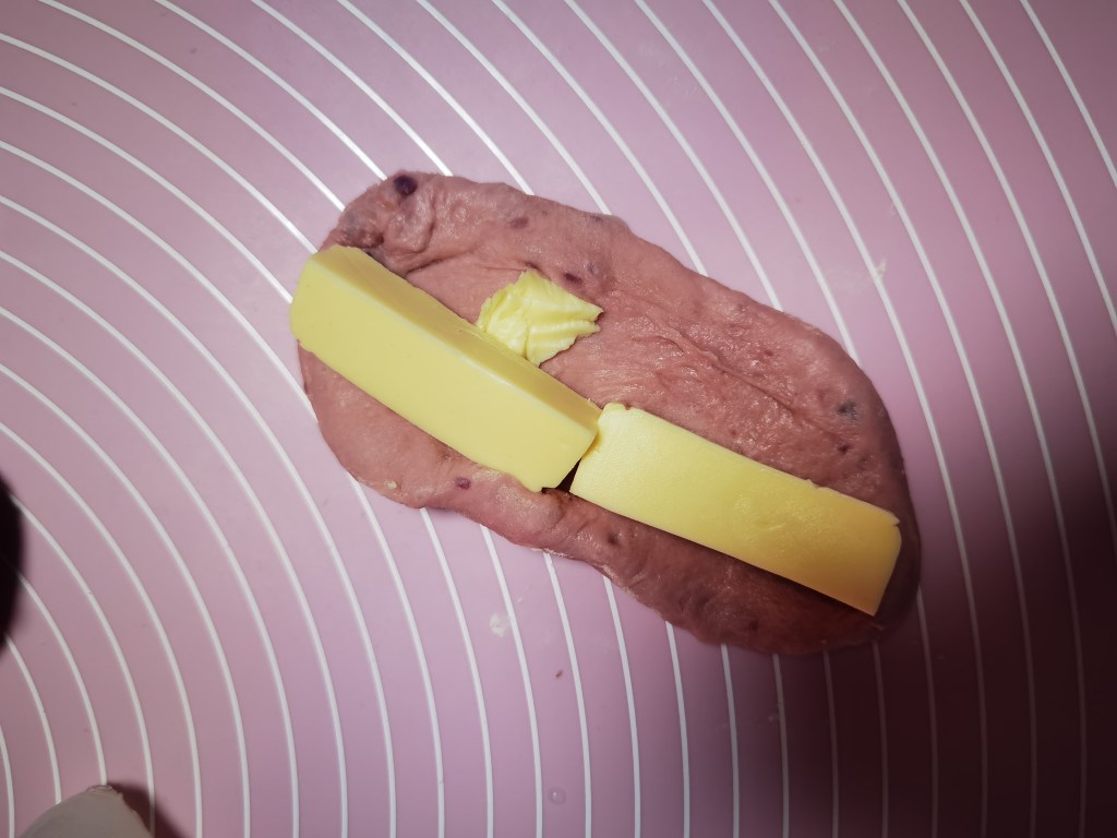- Lightly flour the work area and roll the dough into a long oval shape, put 30g grams of cheese in the middle. Roll into a log and seal up the edges (refer to photo below, be sure to seal the edges well so that cheese will not ooze out during baking) . Do the same for the rest of the dough.
