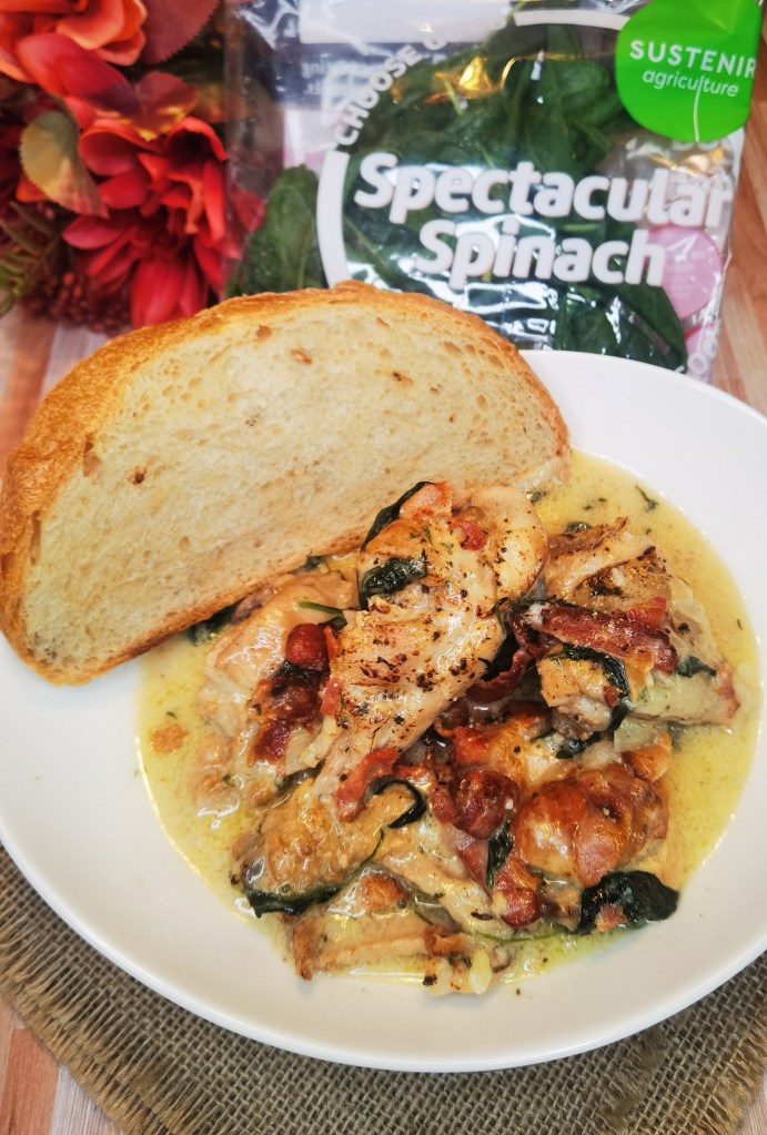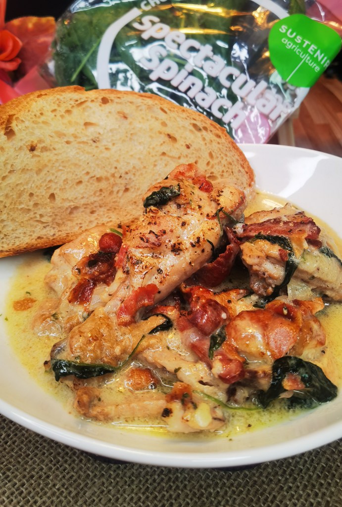 A delicious one pot dish that goes well either with bread or rice, this meal is bound impress at the dinner table. Look at how creamy and inviting this plate of chicken is ! Not only is it delicious but nutritious too! That is because I added a pack of Sustenir’s Spinach. These spinach are grown locally so you can ensure its top tier in freshness. Best of all, they are grown with no pesticides. That means it is 100 percent clean, no need for washing. You can just simply eat it on it’s own or added to your preferred dish like this =)