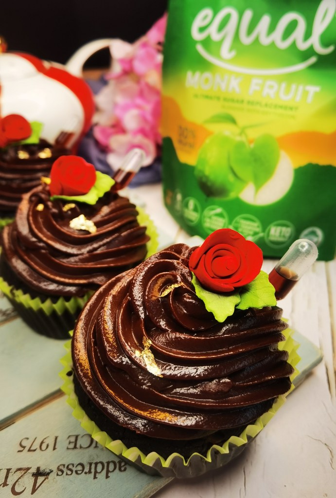 These cupcakes are simply irresistible. It is decadent and moist even on the third day. I made it for hubby as an anniversary gift as I can’t think of anything else to give but food. Since he loves chocolate, I thought of making him this pretty cupcakes. I used monkfruit as the sweetener, zero calorie and plant based, it is just perfect since he had put on some weight during this endemic time. He can eat one or two with lesser guilt.