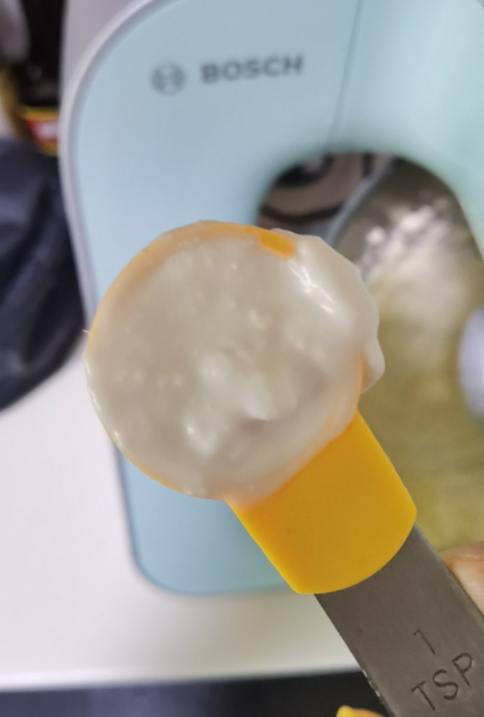 • Add 2 tsp of coconut milk and coconut flavour , mix till combined.