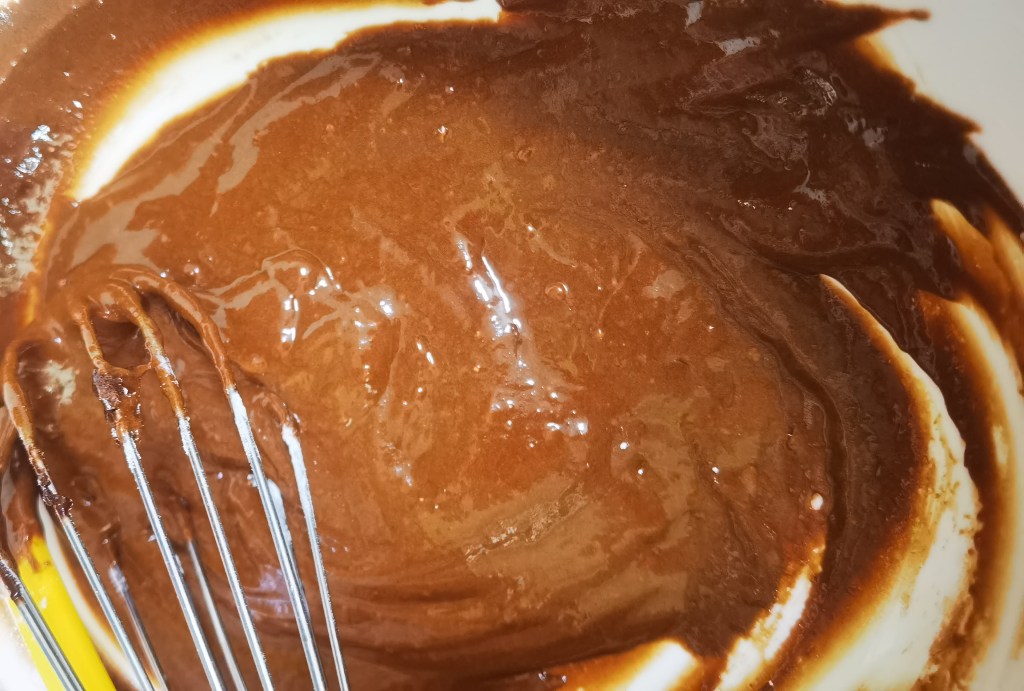 - Add in the 10g oil, milk until combined. Add in the cold egg yolks. Mix until well combined.