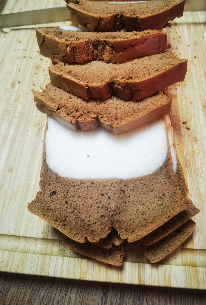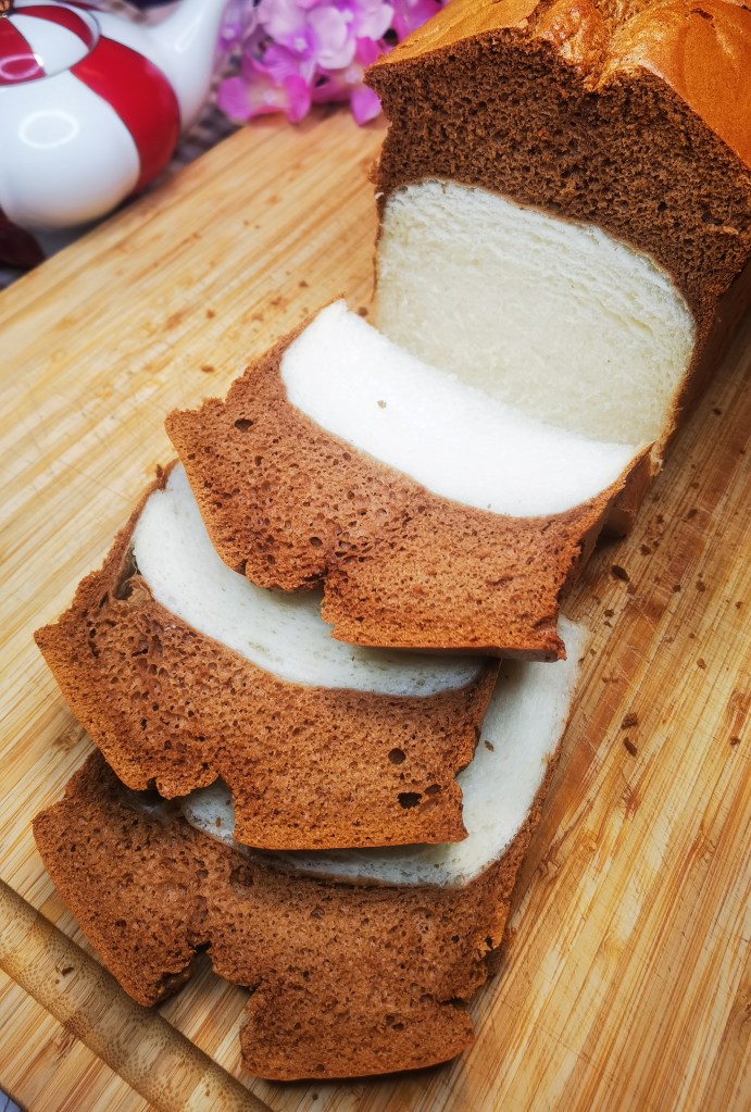 When you are craving for some cake and you need to bake bread, but then you realise you only have two eggs left – that was the story how this loaf was born hahahaha. So how do you eat it ? What I did first, was bite into the bread side that has cheese spread on it, savour its flavour before taking another bite into the cake part. On the other hand, my husband folded the bread that has cheese spread on it. Then bit into both sides, so he could enjoy both flavours and textures in each bite. How about you ? How would you eat it?