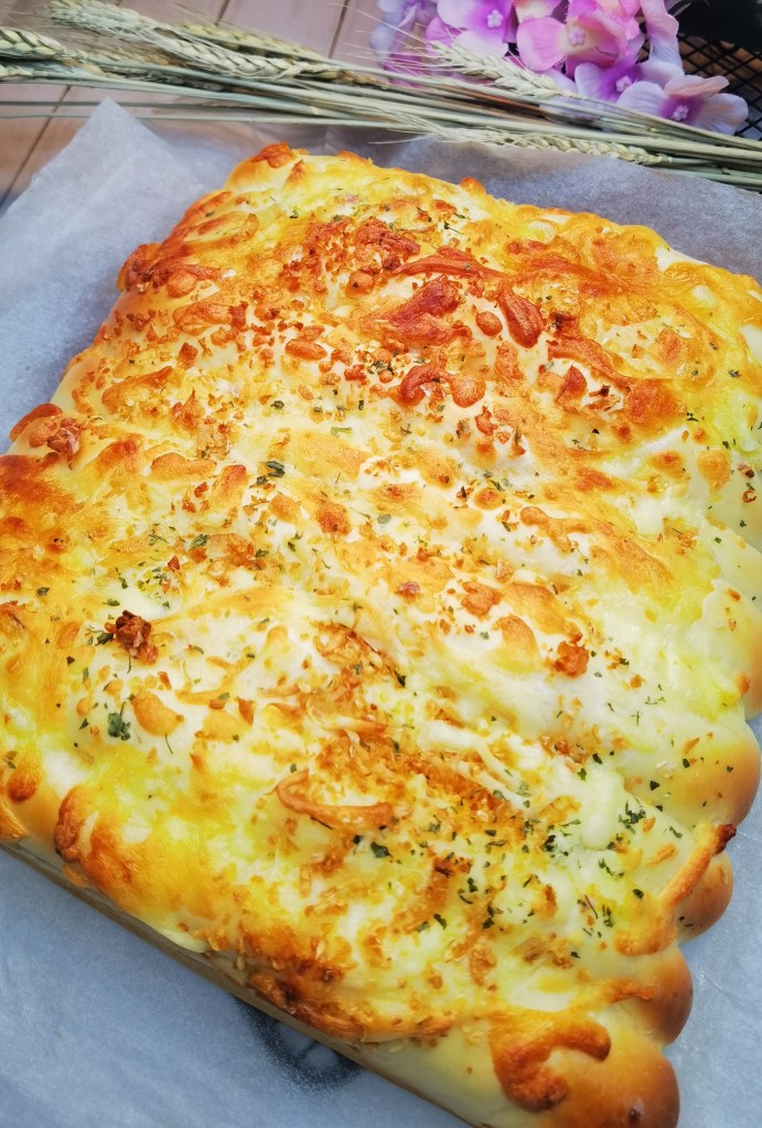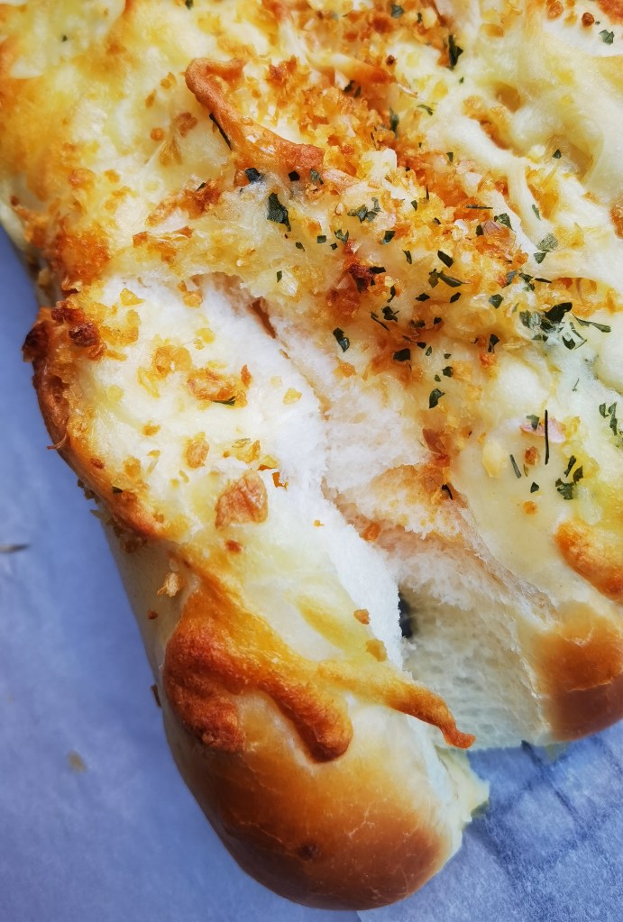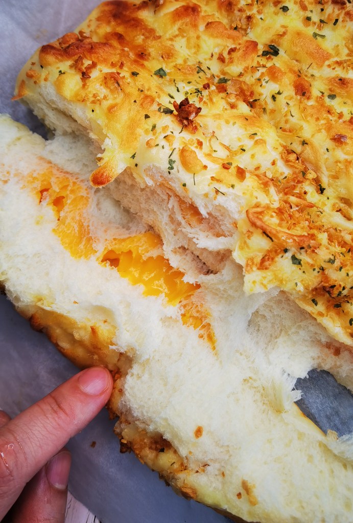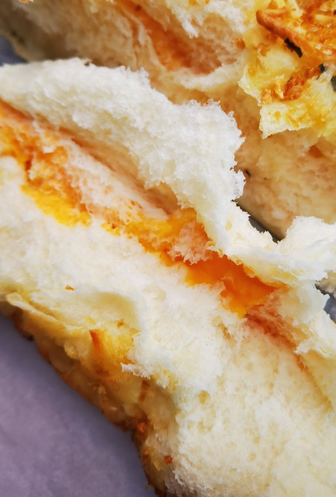 This pull-apart bread is very soft and spongy. I used the “tangzhong” method to make this delicious bread. It is filled with cheese and topped with more cheese. I also added some fried minced garlic and dried parsley. It is not difficult to make, you just need a saucepan to cook the flour until it is gelatinised, about 65 degree celsius, allow it to cool down at room temperature before mixing it in with your other ingredients. With just this one extra step and you will get this super soft bread