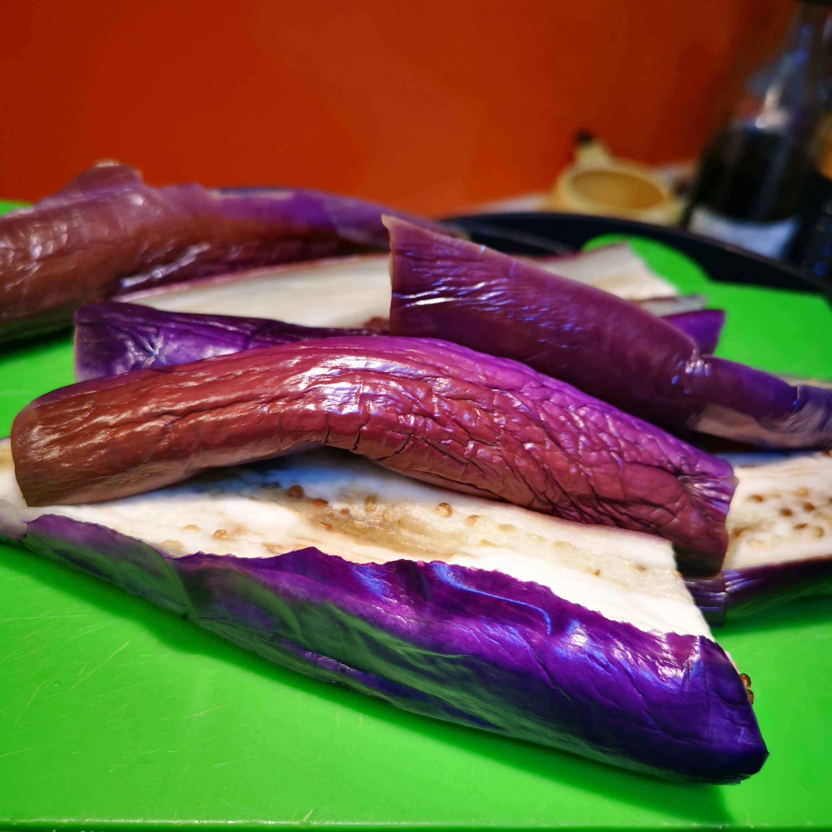 Note : Another method that I found is using my Ninja food grill. I preheated it at 265 degree celsius. Spray oil on the rack, lay the eggplant , skin up, spray some oil on the skin , then grill it for about 4-5 minutes. Adjust accordingly base on the size of your eggplant. You just need to grill it until soften. Easy Peasy =)